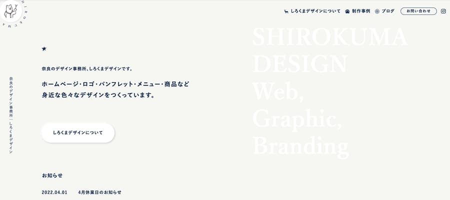 奈良県でホームページ・ロゴ・パンフレット・チラシ・メニューやタペストリーなどの事業に関わる様々なデザインを制作されるしろくまデザイン様。